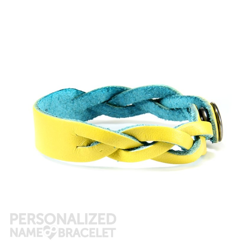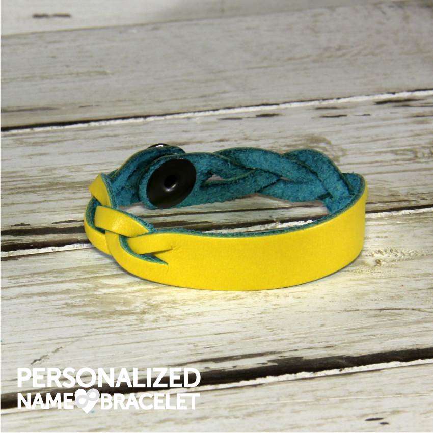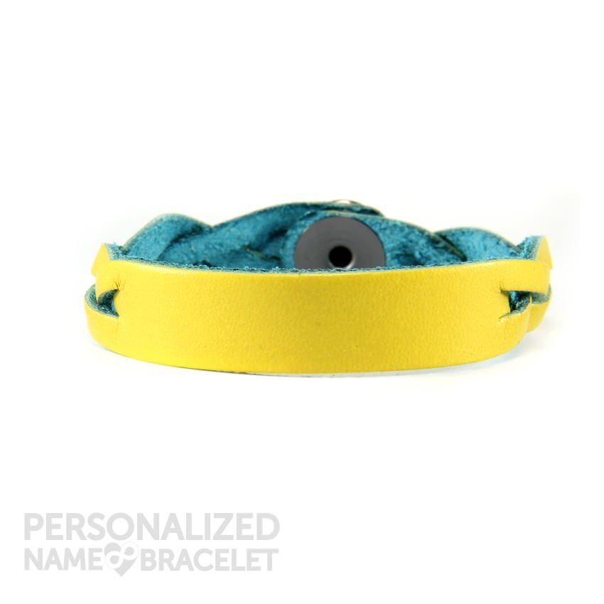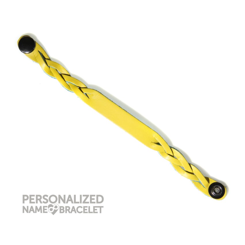 A fun and vibrant color. The yellow ID gives a real Florida vibe. Also, if you are looking for a bracelet to add a sun symbol to than this would be the one. This true yellow was paired with all natural eco-dyed teal leather backing meaning the characters carved into the bracelet will be teal colored. Available in 4 sizes, ID style features leather braiding on each end with a center plate suitable for engraving of 12 characters maximum including spaces.